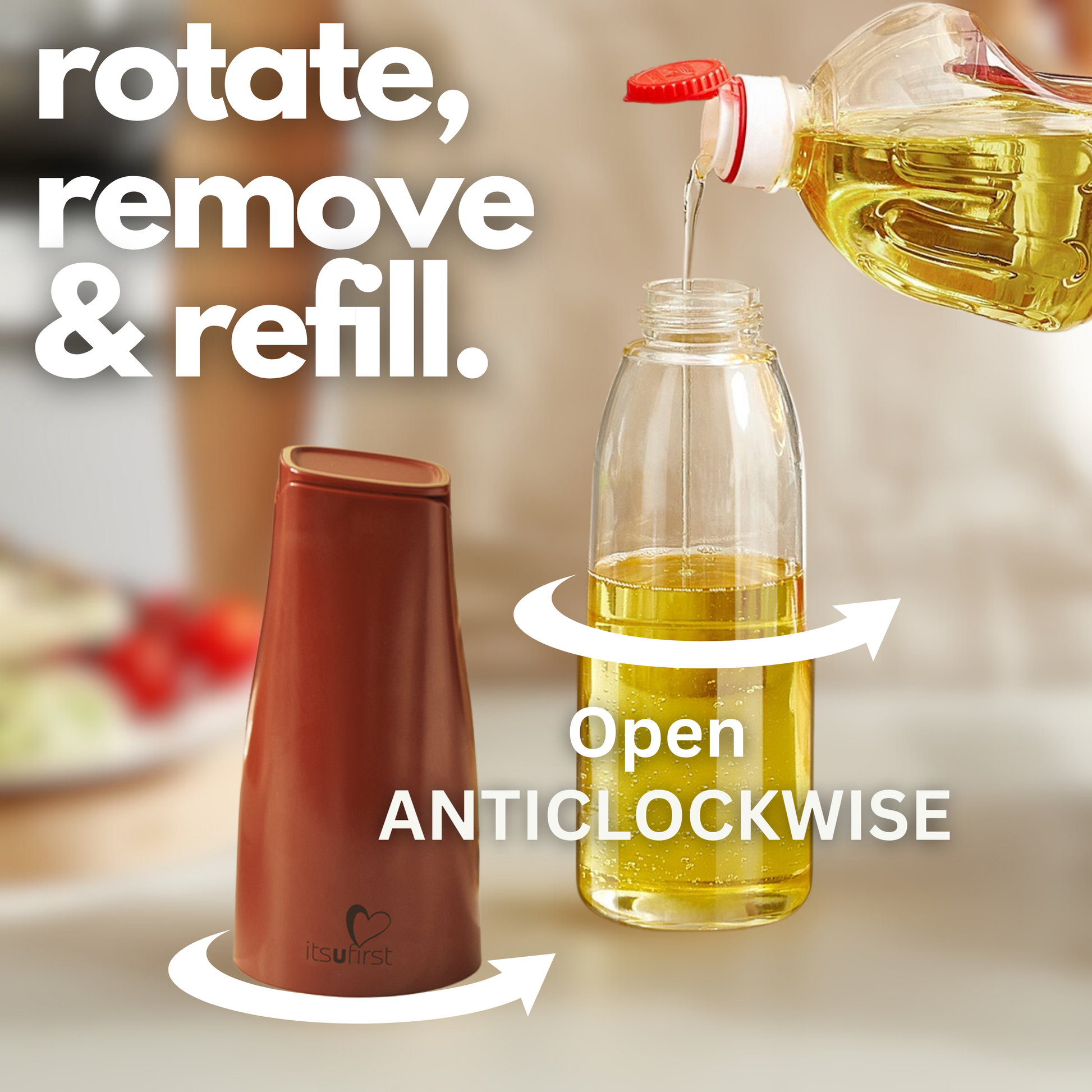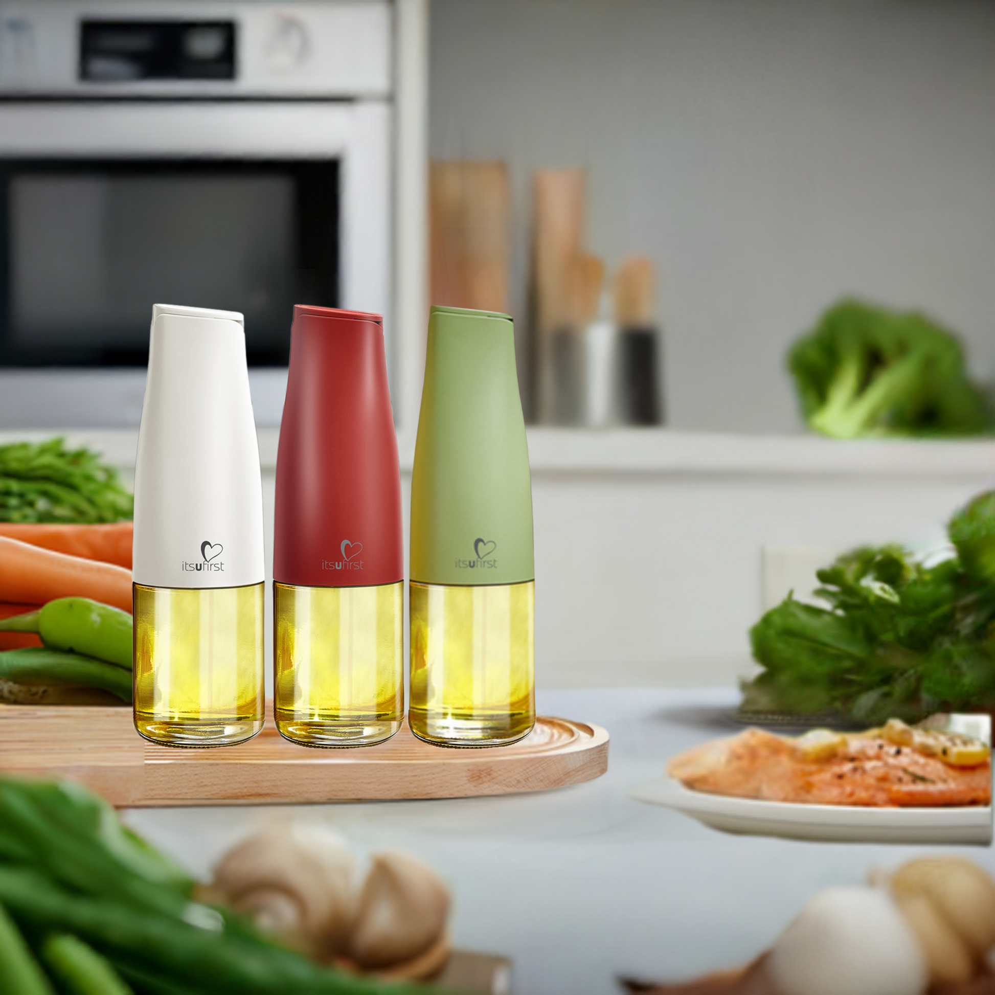 Say goodbye to messy oil bottles with itsufirst's Non-Drip and Auto Flip formula.