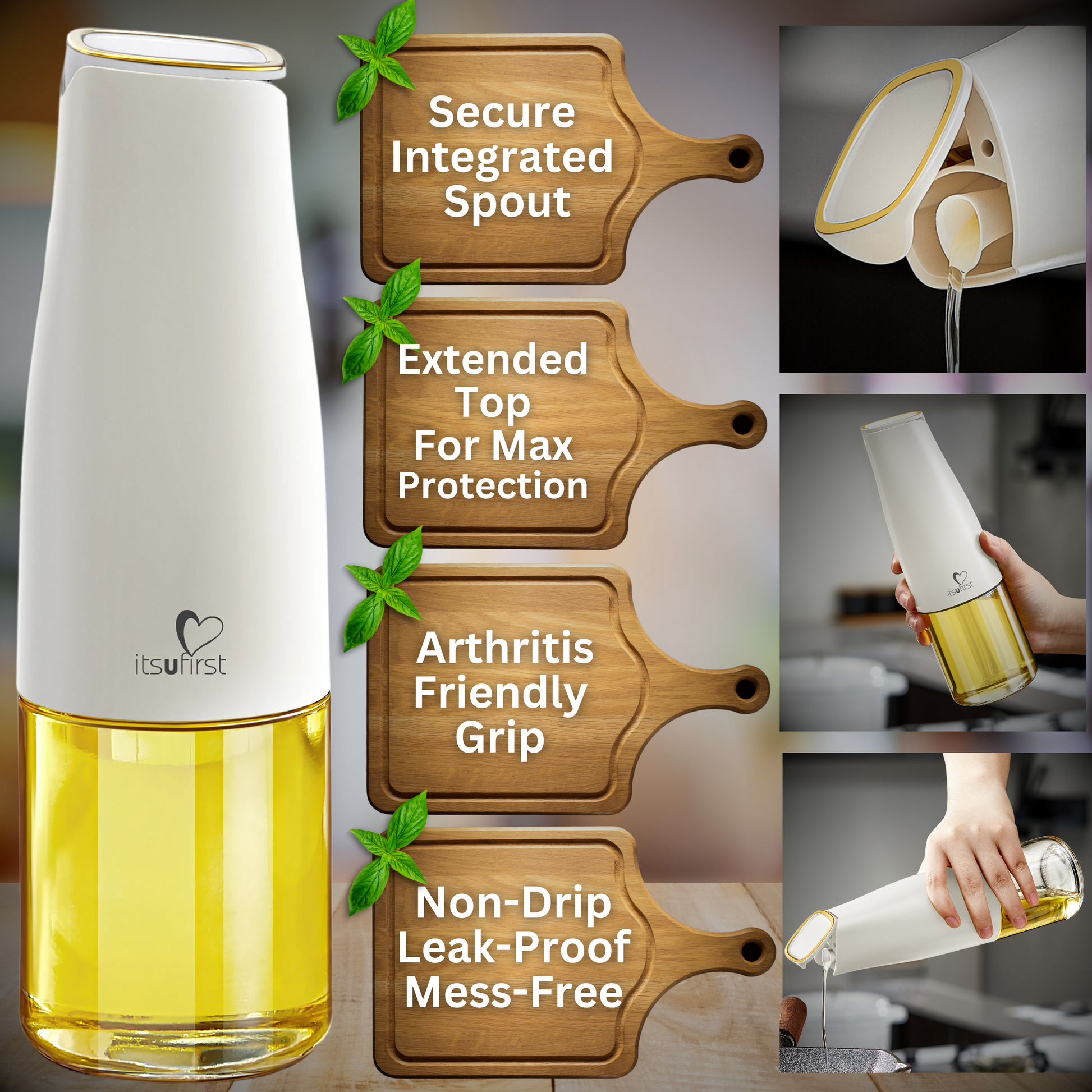 Say goodbye to messy oil bottles with itsufirst's Non-Drip and Auto Flip formula.